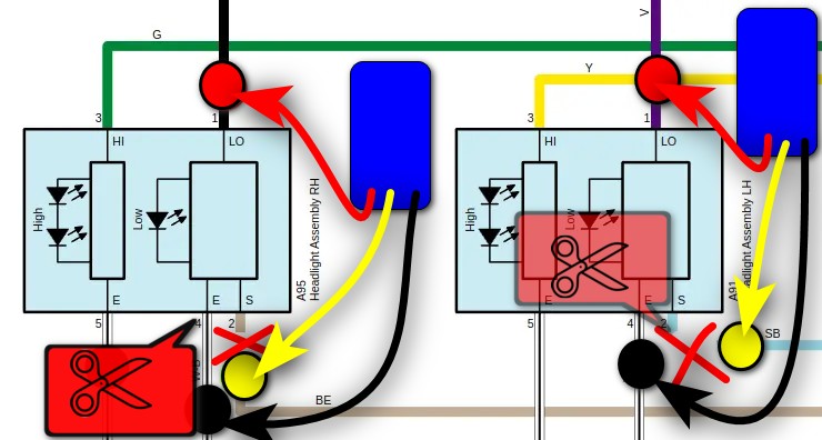 При встановленні неоригінальних фар на Toyota Camry 50 зі світлодіодним ближнім світлом ви можете зіткнутися з помилками B2430 та B2431. Це пов’язано з тим, що не оригінільні фари не мають сигналу зворотного зв’язку. Щоб вирішити цю проблему, потрібно встановити емулятор LEDemu , який при вмиканні ближнього світла генерує відсутній сигнал для блоку Main Body ECU.