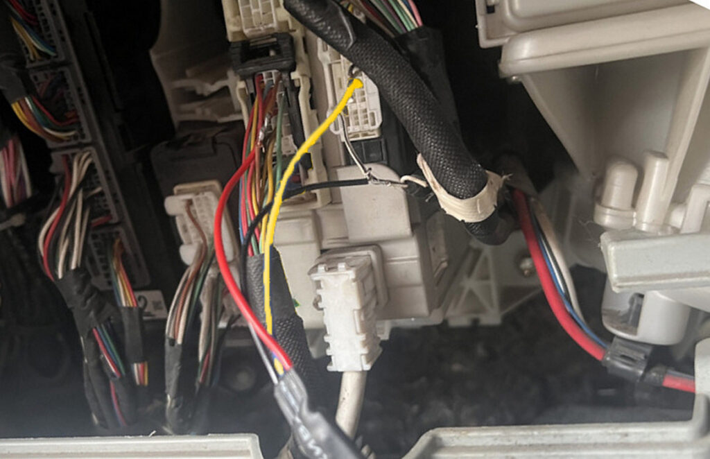 Приклад підключення на PRIUS 30 один емулятор на дві фарі. варіант на блок BCM. Потрібно зняти нижній бардачок. два сигнальних відрізати скрутити разом та подати на них сигнал з емулятора жовтий провід